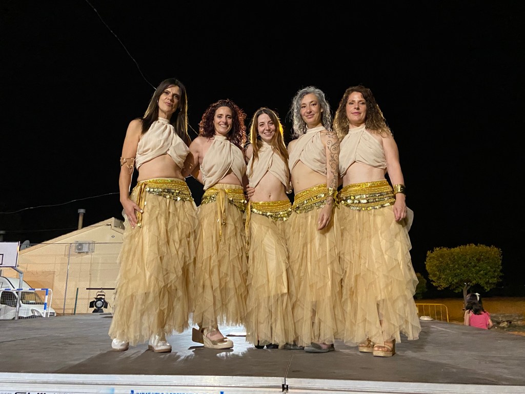 A continuación, el escenario se llenó de magia con dos actuaciones de danza oriental. Primero, el grupo formado por Mª José, Pilar, Rocío y Elena, que demostraron su técnica y compenetración con una coreografía grupal sincronizada y elegante, fuerza de esta disciplina ancestral. Después, viviríamos un momento muy especial con la actuación conjunta de Cristina Centeno y Vero Soriano, alumna y maestra unidas en un emotivo homenaje a la danza oriental que ha marcado su trayectoria.